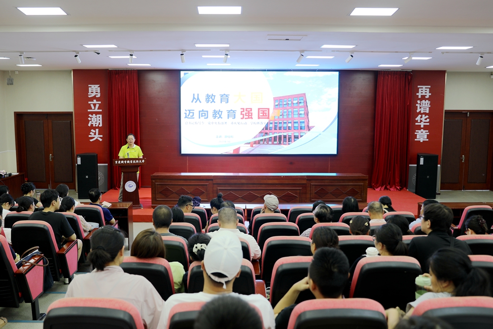 7月8日,校长石晓辉为职能部门教职工开展了一场意义深刻的形势与政策专题授课,聚焦“从教育大国迈向教育强国”这一重要主题,帮助教职工深入理解国家教育发展战略。课上,石校长紧扣2024年全国教育大会精神和《教育强国建设规划纲要(2024-2035年)》核心内容,深入阐述为何要建设教育强国、建设怎样的教育强国以及如何推进建设等关键问题。他强调,建设教育强国是全面建成社会主义现代化强国的战略先导,是实现高...