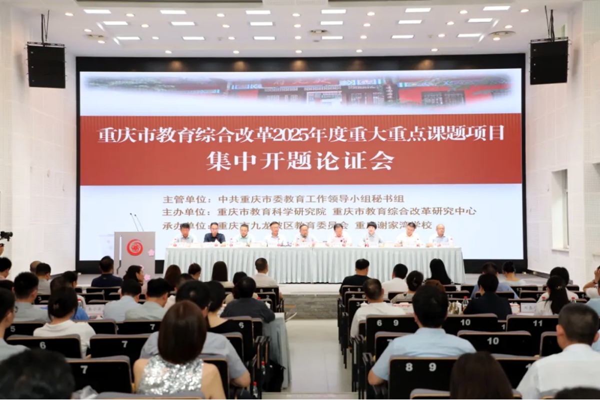 为进一步深化教育领域综合改革,根据中共重庆市委教育工作领导小组秘书组有关要求,2025年6月18日,重庆市2025年度教育综合改革重大重点研究课题和试点项目集中开题论证会在重庆谢家湾学校召开。市教科院科研处处长沈军研究员等指导专家受邀出席会议,西南大学教育学部部长朱德全教授等课题主持人、项目负责人及主要研究人员100余人参会。市教科院教育政策研究所所长邓建中主持会议并宣读了立项通知及分组安排。由学...