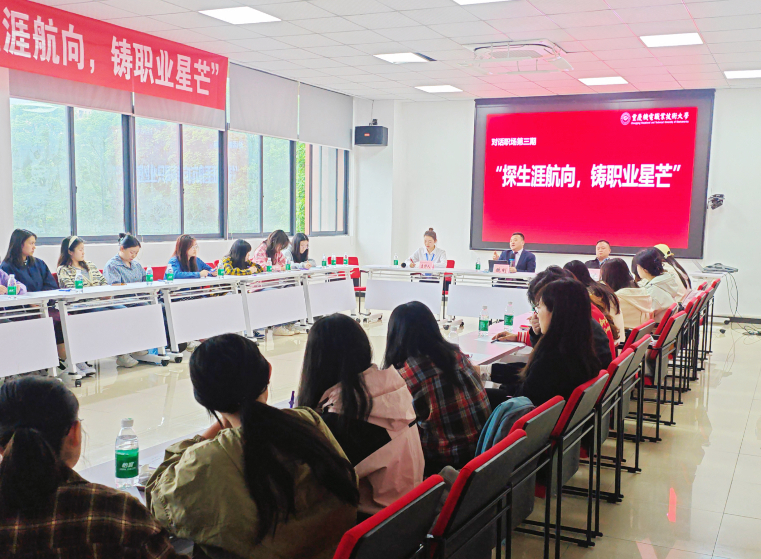 4月24日,商会民企校园行品牌创新项目“对话职场”沙龙,在学校A208会议室精彩上演。本次活动以“探生涯航向,铸职业星芒”为主题,重庆市高校就业创业导师、资深就创业专家唐小兵,西南教育学院院长、国家一级人力资源管理师魏刚作为特邀嘉宾参加沙龙。此次活动吸引了来自各学院的40余名学生,共同探讨职场发展和未来规划。