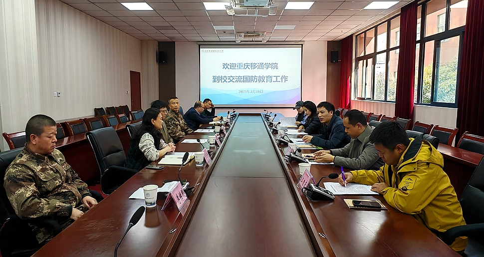 3月10日下午,重庆移通学院学生处处长陈帅一行五人莅临taptap点点考察,双方就高校国防教育、征兵、军训及军士生培养等方面的工作经验进行了交流分享。学校副校长何超、学生处处长李云杨、军士生学院院长陈飞、党总支副书记李继刚等一行人陪同考察。