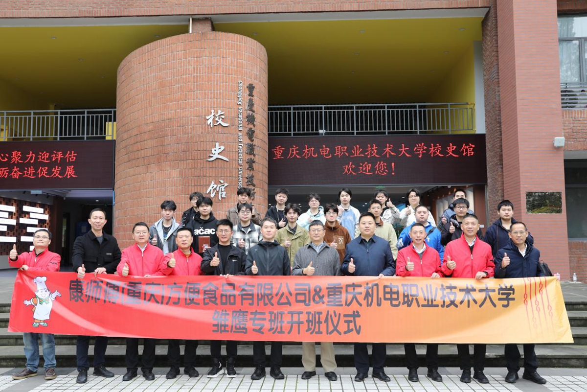 为深入推动产教融合,优化校企资源共享机制,共同培育适应产业需求的高素质技术技能人才,11月12日,学校与康师傅(重庆)方便食品有限公司在会议室F107隆重举行“康师傅雏鹰专班”签约暨开班仪式。康师傅(重庆)方便食品有限公司厂长钟彦、人资处处长王周兵等7位企业领导,学校党委副书记、副校长何超,招就处、机械工程学院、电气与电子工程学院等相关负责人共同出席了本次活动。仪式由招就处处长杨阳主持。