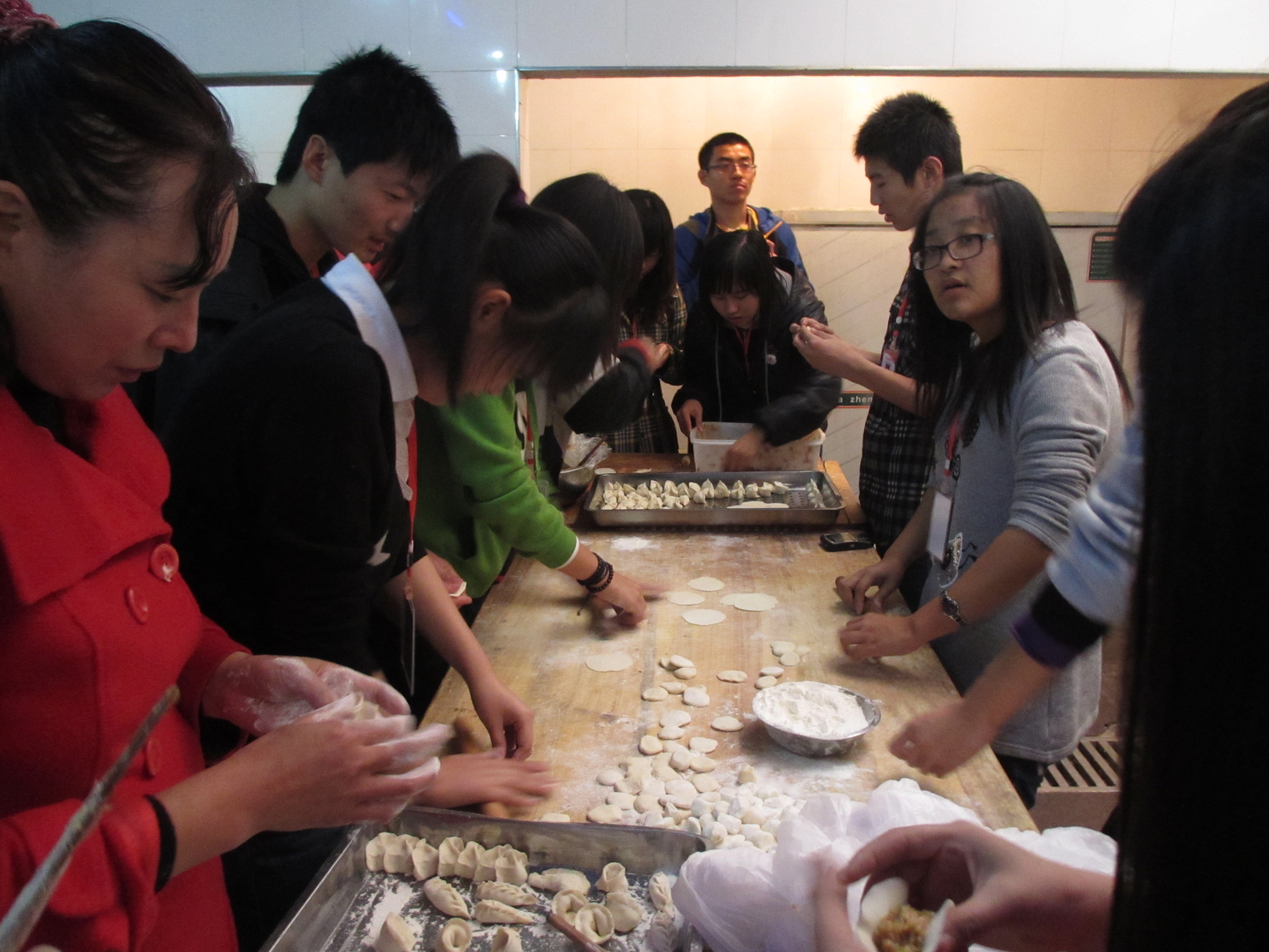 清晨,志愿者一行来到敬老院后进行了简单的分组,在工作人员的带领下走进老人们的房间与他们聊天,并义务进行了简单的清洁。随后,志愿者为老人们献上了精心准备的文艺节目,包括大合唱、戏曲、魔术表演等,热情洋溢的表演深得老人的喜欢。文艺表演期间,双方举行了志愿服务基地的揭牌仪式。最后,志愿者们共同来到餐厅包饺子,为老人们献上了一顿温馨的午餐。