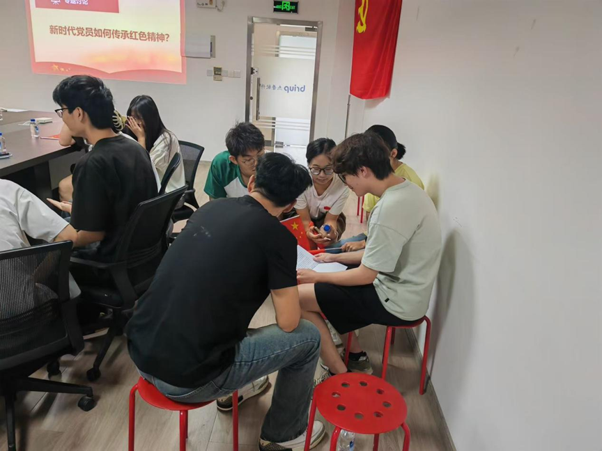 为进一步深化对“新时代党员如何传承红色精神”的思考,活动设置了小组讨论环节。全体参与者分为4个小组,围绕“青年党员传承红色精神的实践路径”展开深入探讨。各小组讨论现场气氛活跃,成员们各抒己见、建言献策。“红色精神不是虚无缥缈的口号,我们要学习革命先辈精益求精的精神,勇担青年使命”。