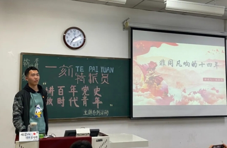 本期“特派员”由燕纪名、荣宇华、石轩硕三位同学担当,进行个人分享。首先燕纪名同学从东北抗联历史讲起,详细讲述了东北抗联的发展历程,阐述东北抗联精神的内核,引导广大同学向他们学习,发扬优良传统,弘扬新风正气。“学党史,跟党走”,荣宇华同学系统地梳理了党史进程,让同学们明白了要以先辈先烈的行动为指南,以实际行动报效祖国。最后,石轩硕同学分享了长征路上一个生死攸关的转折点——遵义会议。结合视频,身临其境的感受到当时的情境,了解到这次会议的重要意义,更获得“始终把马克思主义原理和中国实际情况结合起来”的重要启示。